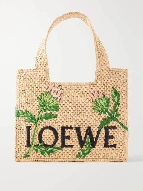 Designed in collaboration with Paula’s Ibiza, Loewe’s tote is woven from raffia and embroidered with artichoke motifs and the house moniker. Sized for essentials, it brings a playful note to summer outings.