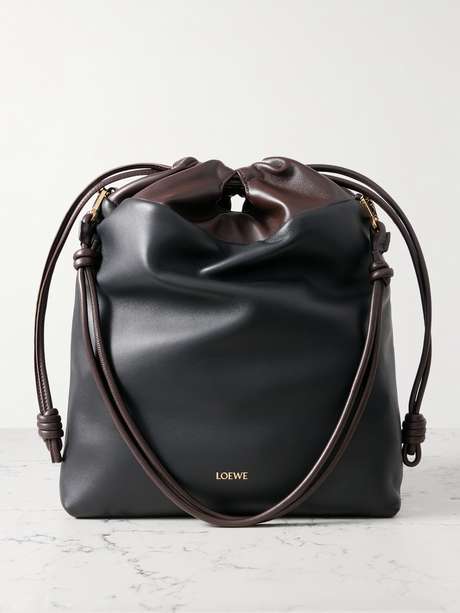 Loewe's 'Flamenco' tote has been made in Spain from supple, two-tone leather and threaded with a drawstring that pulls the fabric and ripples the hide. Inside, there's plenty of room for the essentials, like your wallet, phone and keys.