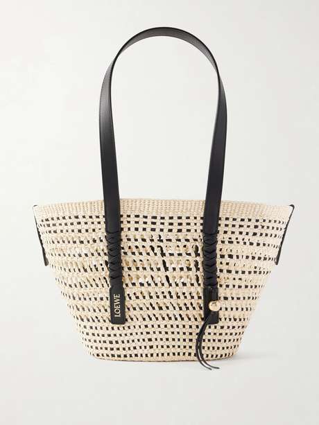 LOEWE + Paula's Ibiza Braid medium leather-trimmed raffia tote