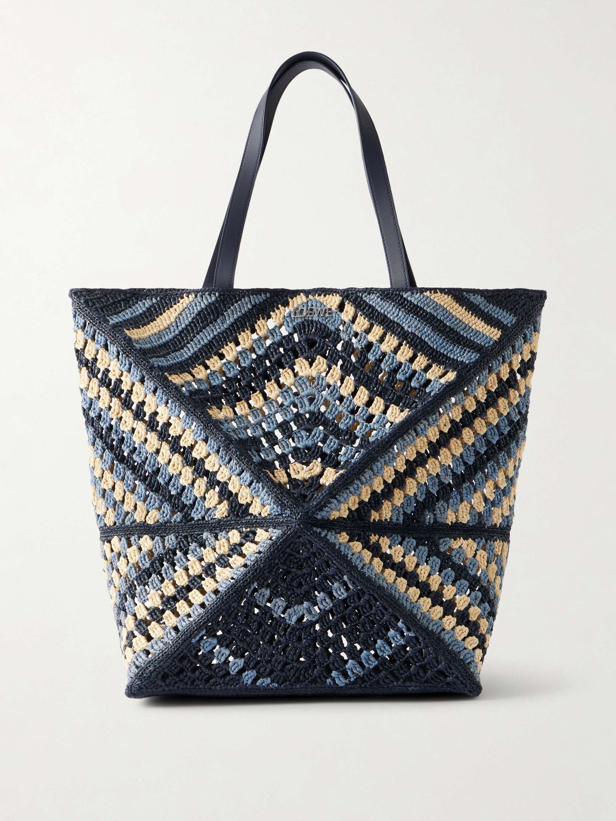 LOEWE + Paula's Ibiza Puzzle Fold large leather-trimmed raffia shoulder bag