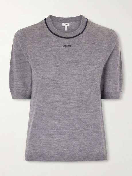 Loewe's T-shirt has been knitted in Italy from soft and lightweight wool, embroidered with the house's logo front and center. It's cut for a slim fit with ballooned sleeves and has black piping framing the crew neck. Style yours with anything, from casual jeans to tailored pants.
