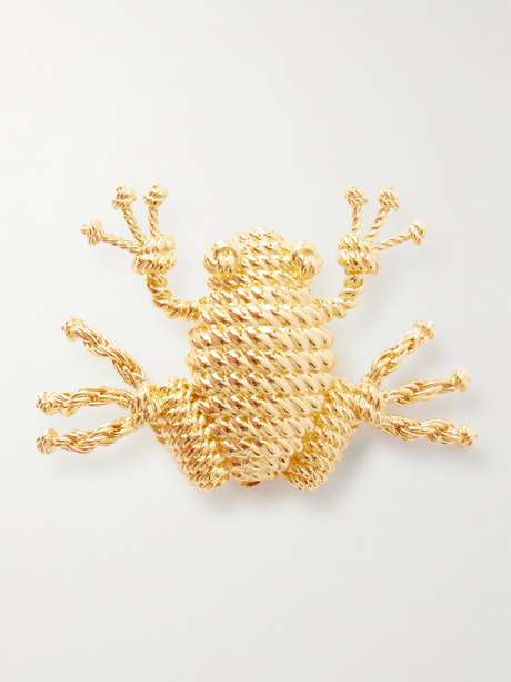 Loewe's accessories collections often feature whimsical details - this brooch is shaped like a leaping frog. It's made from gold-tone metal and has a braided texture. Pin yours to a jacket lapel or scarf.