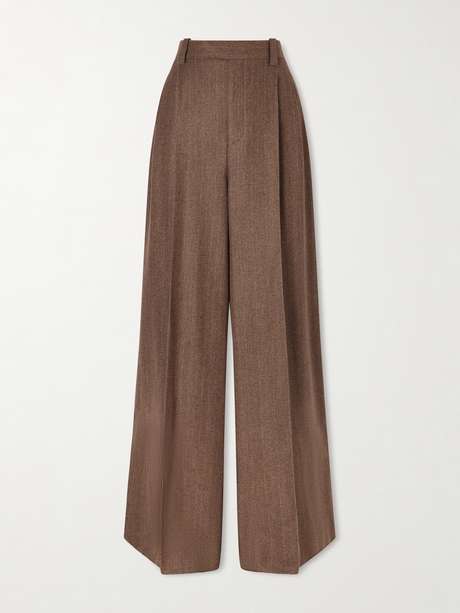 LORO PIANA Pleated pinstriped wool and cashmere-blend wide-leg pants
