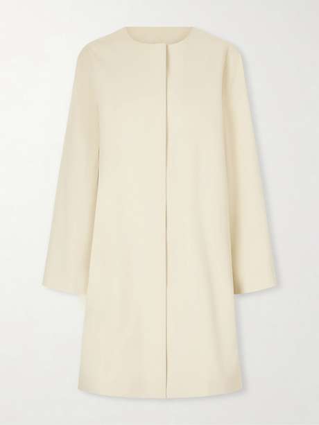 Loulou de Saison's minimalist 'Merill' coat features timeless, clean-cut lines reminiscent of '60s styles. Tailored from cotton-gabardine in a neutral shade, it falls with a subtle A-line shape. The front fastenings are concealed for an elegant finish.
