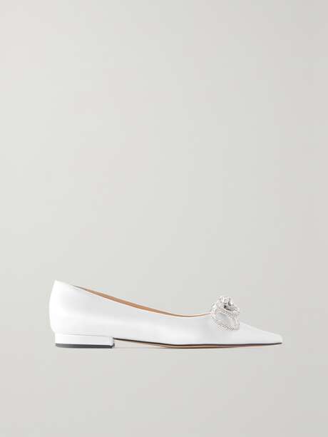MACH & MACH Double Bow crystal-embellished satin point-toe flats