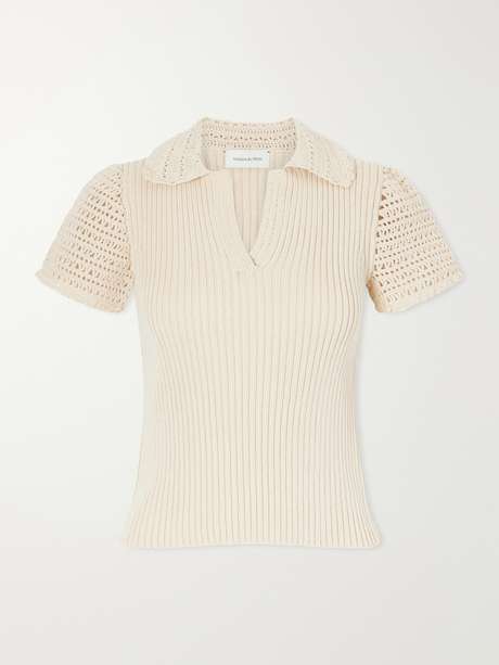 MAGDA BUTRYM Crochet-trimmed ribbed cotton polo shirt