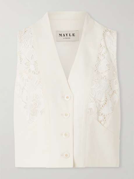 MAISON MAYLE Ines lace-trimmed wool-twill vest