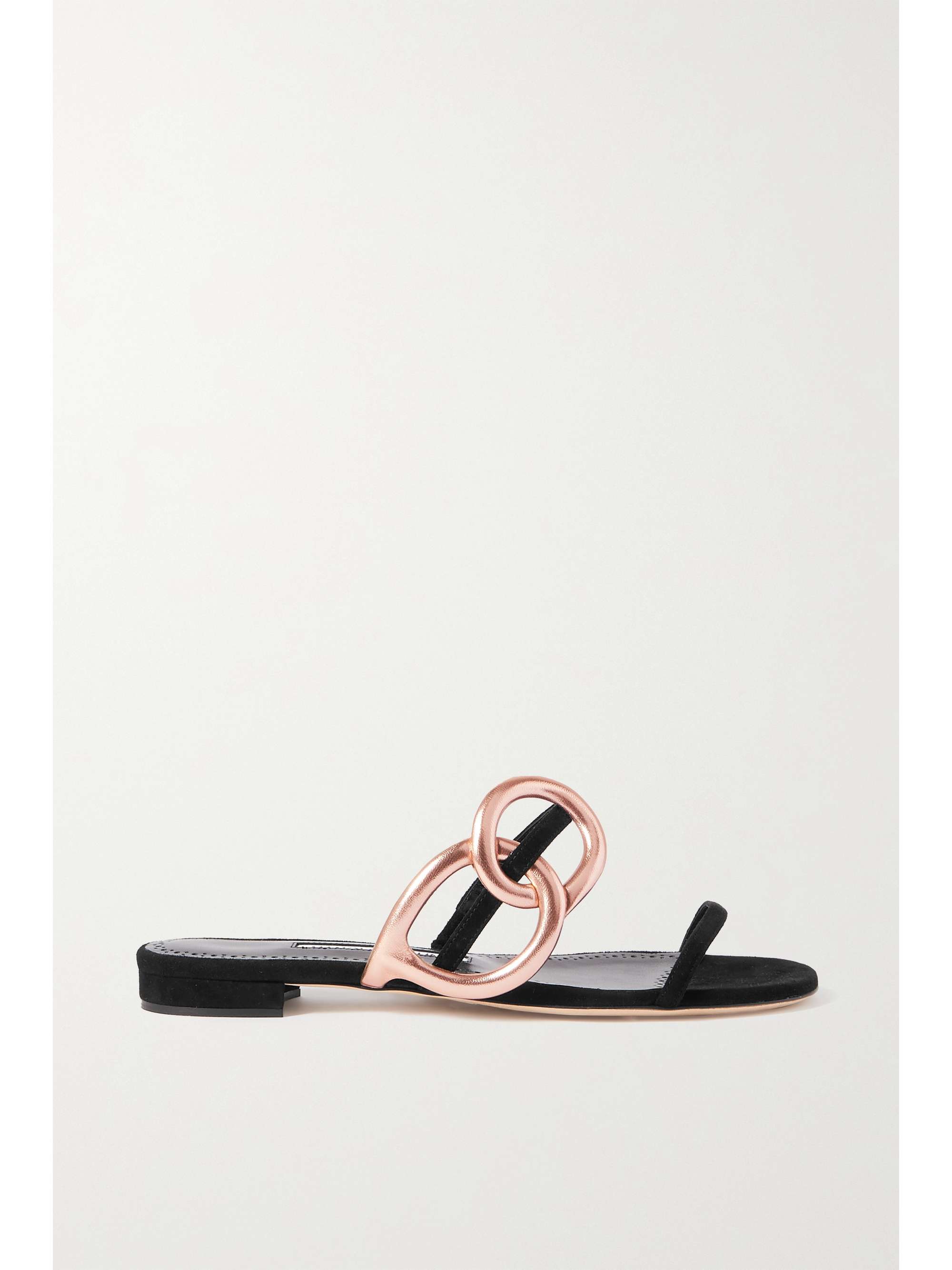 MANOLO BLAHNIK Piedad metallic leather and suede slides