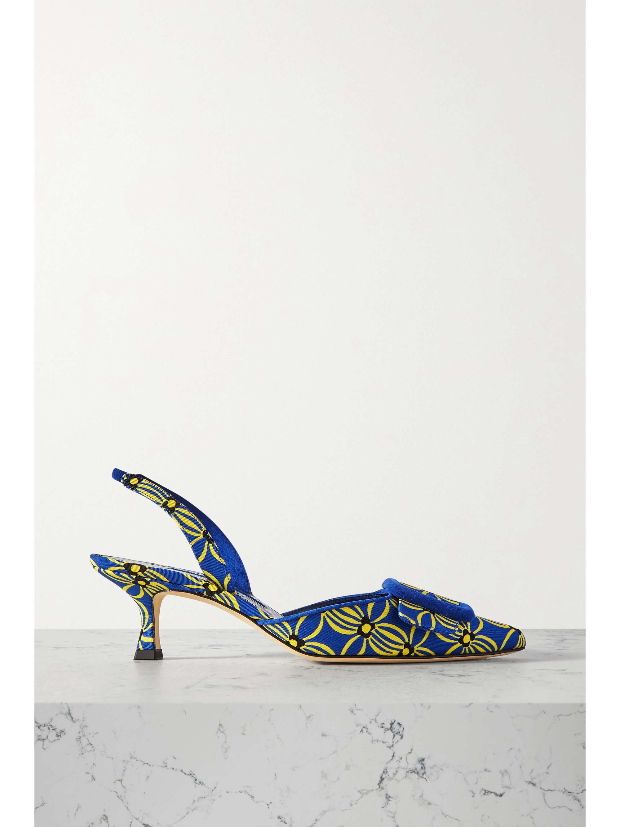 MANOLO BLAHNIK Mayslibi 50 embellished floral-print twill slingback pumps