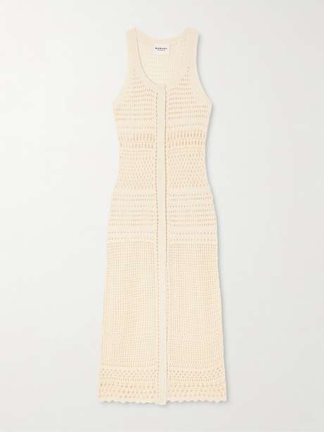 Marant Étoile's 'Zaro' dress works well for layering. Knitted from a cotton and linen-blend, it has an open-knit construction with ribbed trims and a scalloped hem. Style it over a bralette or with stacked jewelry.