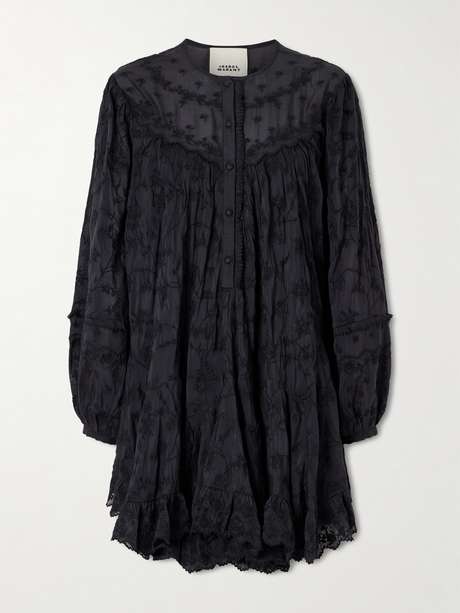 MARANT ÉTOILE Zame ruffled embroidered cotton and silk-blend mini dress