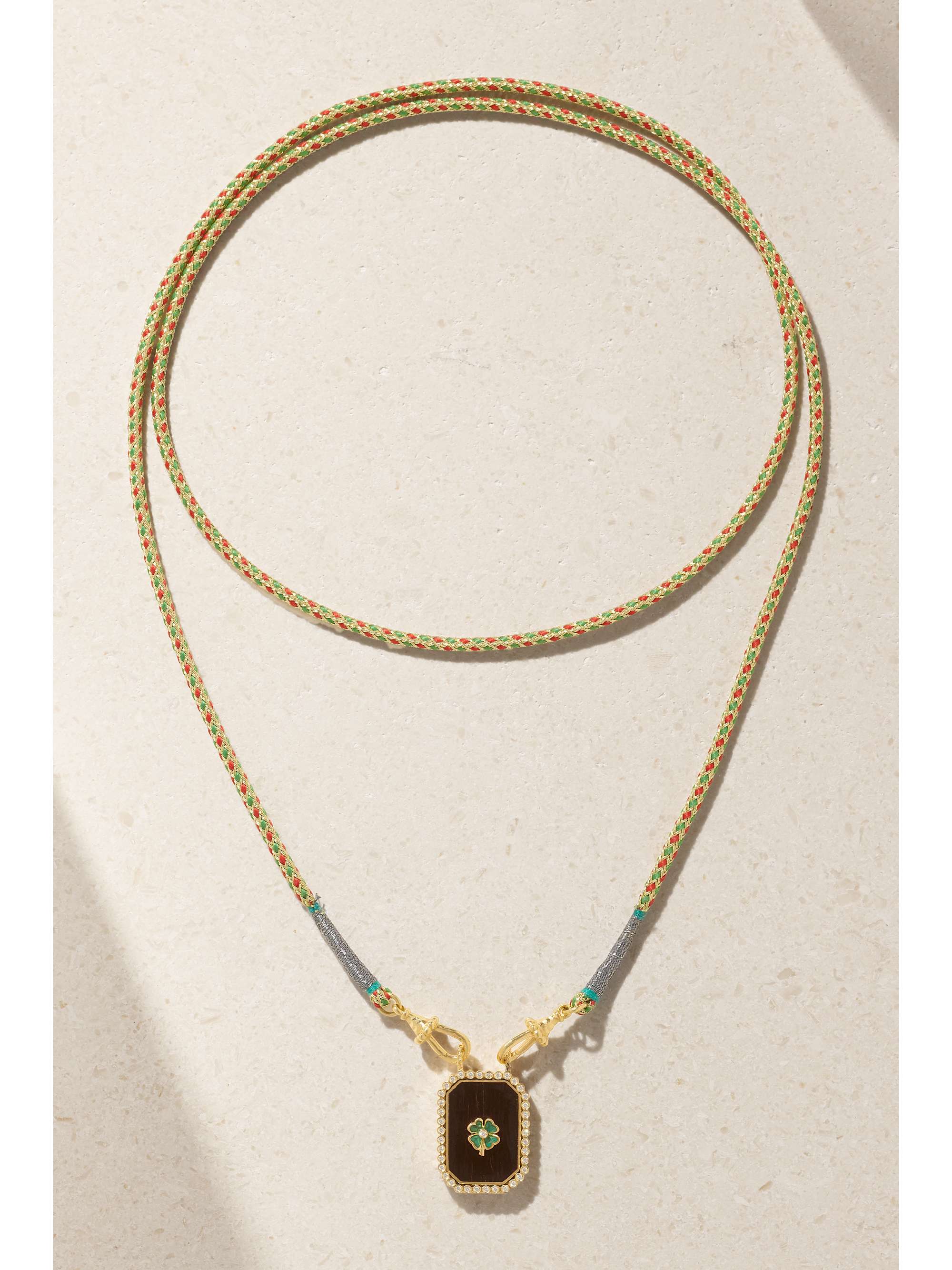 MARIE LICHTENBERG Clover 14-karat gold, diamond, enamel and silk necklace
