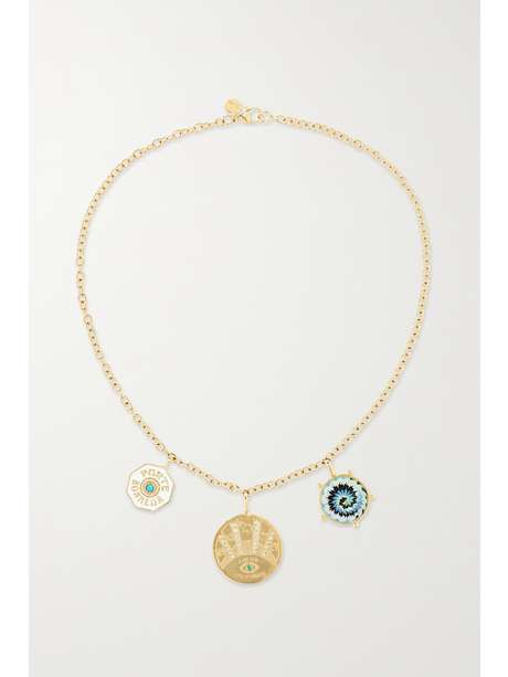 MARLO LAZ Coin 14-karat gold multi-stone necklace