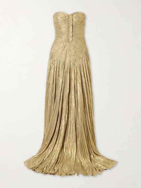 MARMAR HALIM Draped pleated metallic silk-georgette gown