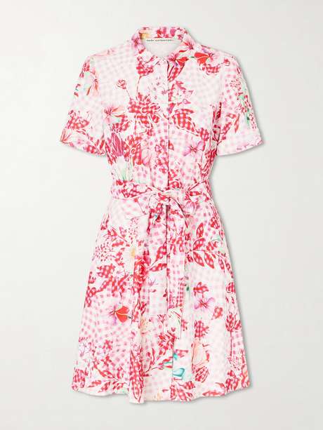 Inspired by traditional weaving techniques, Mary Katrantzou’s 'Chima' dress is reimagined in the Fleur Cherry print, where painterly florals unfold across a fruit-toned palette. It’s cut from twill in a shirt-inspired silhouette and cinches at the waist with a self-tie belt.