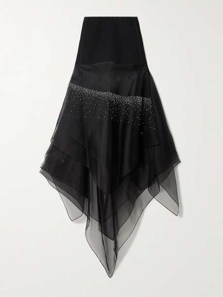 MATICEVSKI Meet The Sky asymmetric crepe and bead-embellished silk skirt