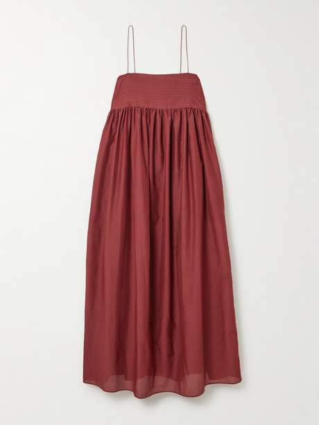 MATTEAU Pintucked organic cotton and silk-blend maxi dress