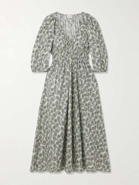 MATTEAU Shirred paisley-print organic cotton midi dress