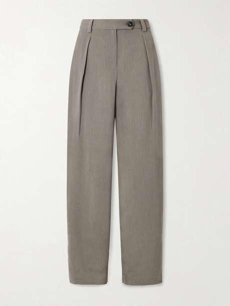 Matteau's pants come in a 'Myrtle' green shade that looks so chic styled as part of a tonal outfit. They're neatly pleated below the high waist and have straight, subtly tapered legs.