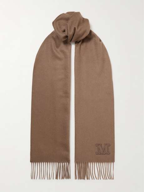 MAX MARA Fringed embroidered cashmere scarf