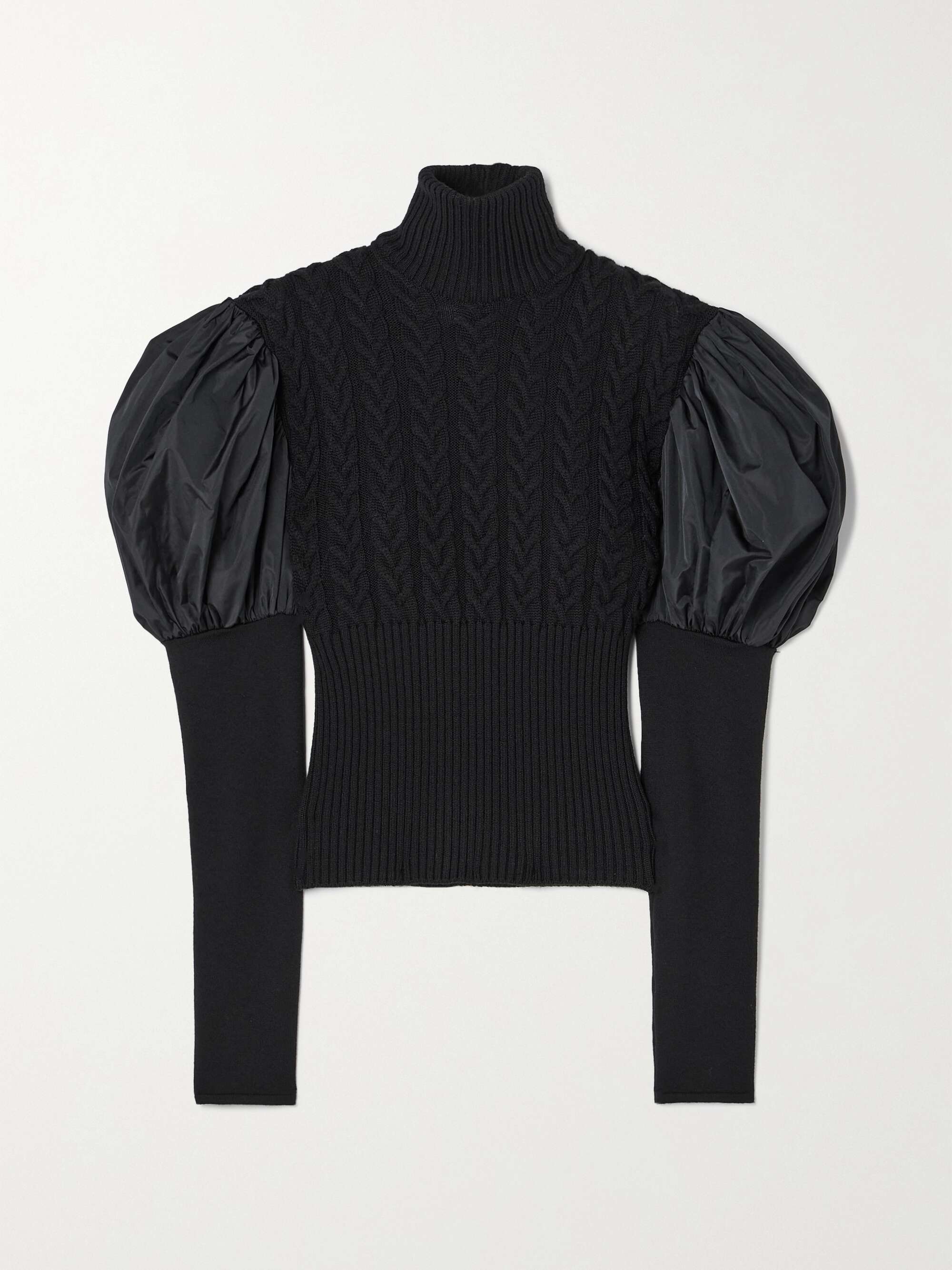 MAX MARA Aster taffeta-paneled cable-knit wool turtleneck sweater