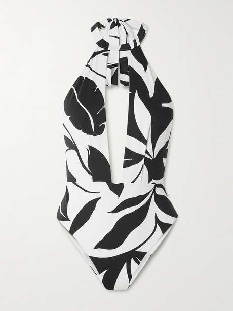 Max Mara's swimsuit offers a minimal take on tropical prints. It's made from comfortable stretch-polyamide printed with monochrome foliage. The elongated keyhole opening is so elegant.