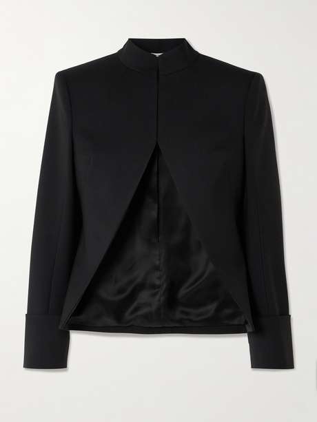 Expert cuts cement McQueen's collections. This jacket is tailored from smooth stretch-wool twill and darted at the collar. The open front encourages experimentation – try layering it over everything from shirts to dresses.