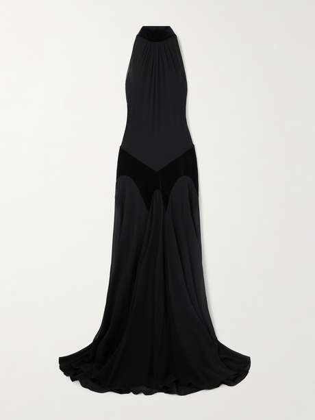 When it comes to big events, it's always worth making an entrance in a memorable gown. McQueen's is made from silk-georgette with cotton-velvet along the turtleneck and dipped waist panel. The cascading train made such an impact on the runway.