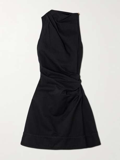 McQueen's mini dress is gathered at the neckline and hips for a striking sculptural effect. It's made from black denim and cinches to define the waist. Wear yours with point-toe pumps.