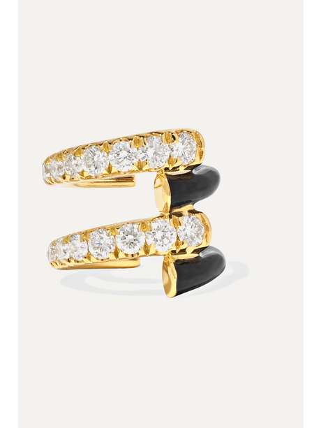MELISSA KAYE Lola 18-karat gold, diamond and enamel ear cuff