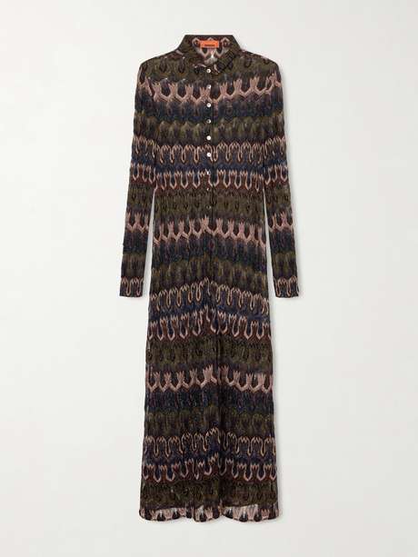 Rendered in a palette of earthy hues, Missoni's cardigan has been crochet-knitted in Italy and subtly threaded with metallic flecks. A modern reworking of the house's iconic motif lends depth and texture, while a neat collar keeps the silhouette refined. Layer it over all-black outfits to let the shimmer stand out.