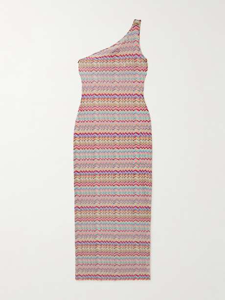 Missoni's vibrant patterns are unmistakable. This coverup is made from lightweight stretch-mesh that's emblazoned with rainbow chevron stripes and has a one-shoulder neckline. Slip yours on over swimwear while lounging at the pool or beach.