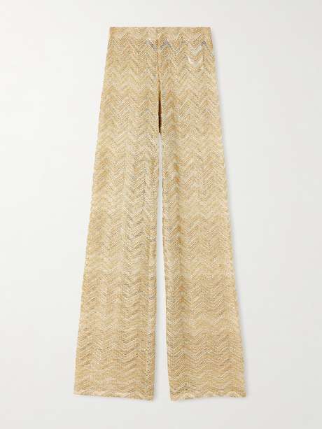 Missoni's vibrant patterns and signature techniques make its clothing so fun and distinctive. These wide-leg pants are crochet-knitted using shimmering metallic thread and feature the label's iconic zigzags.