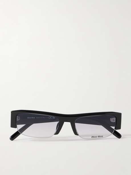 Miu Miu's 'Vedette' sunglasses are designed with gradient, blue light-blocking lenses. Made from acetate, they have partial square frames with rimless bottoms.