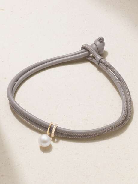 MIZUKI 14-karat gold, leather, pearl and diamond necklace