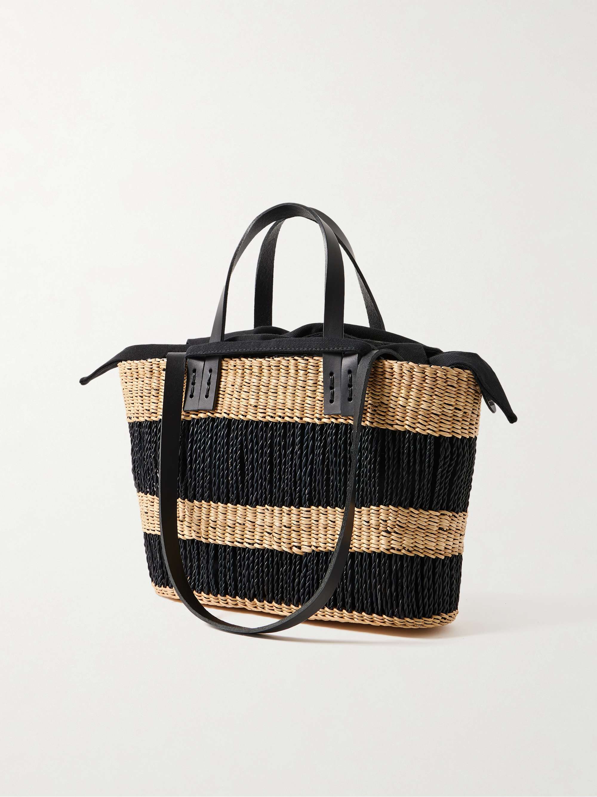 MUUÑ Marcus leather-trimmed striped woven straw tote