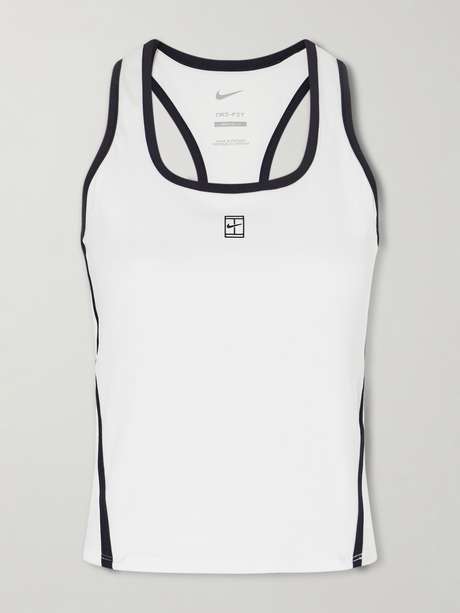 Nike’s 'Dri-FIT Tennis' tank is engineered for performance, crafted from the label’s moisture-wicking fabric to keep you cool and dry on the court. The streamlined racerback silhouette allows full range of motion, while contrast trims add graphic definition.