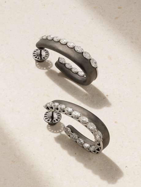 NIKOS KOULIS ME 18-karat blackened white gold diamond hoop earrings