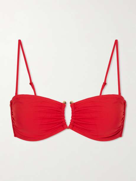 Nili Lotan's bikini top has adjustable, removable straps, so you can switch up the look depending on your mood. It's punctuated with signature gold-tone hardware at the center and detailed with soft ruching.