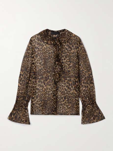Nili Lotan's 'Cecily' blouse exudes glamour. Perfect for your next date night, it's made from leopard-print silk-blend chiffon flecked with gold threads and has flouncy ruffled trims and blouson sleeves with fluted cuffs. Style it tucked into leather pants.