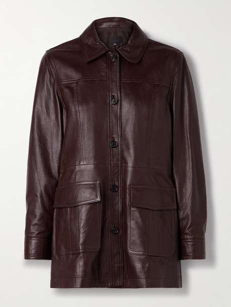 Nili Lotan's 'Emmylou' jacket is perfect for transitional weather. Paneled from supple burgundy leather, it has utilitarian flap pockets and a full satin lining for smooth layering.