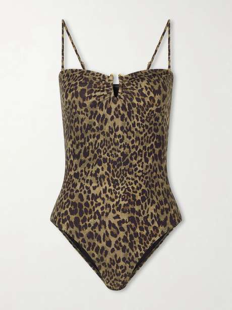 Nili Lotan's leopard-print swimsuit is punctuated with signature gold-tone hardware at the center for a glamorous touch. It has adjustable, detachable straps and offers full coverage.