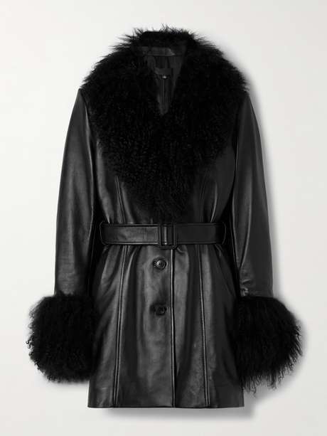NILI LOTAN Sefa belted shearling-trimmed leather jacket