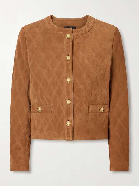 EXCLUSIVE AT NET-A-PORTER. Nili Lotan's 'Amy' jacket is detailed with diamond-shaped quilting throughout, which gives it both a unique texture and a more sophisticated feel. It's cut from buttery suede in a boxy shape and has gold-tone, crest-embossed buttons.