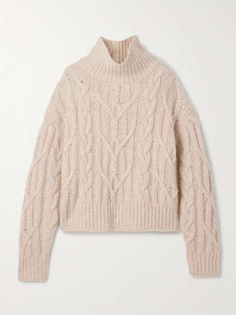 NILI LOTAN Fairiny cable-knit brushed cashmere and silk-blend turtleneck sweater
