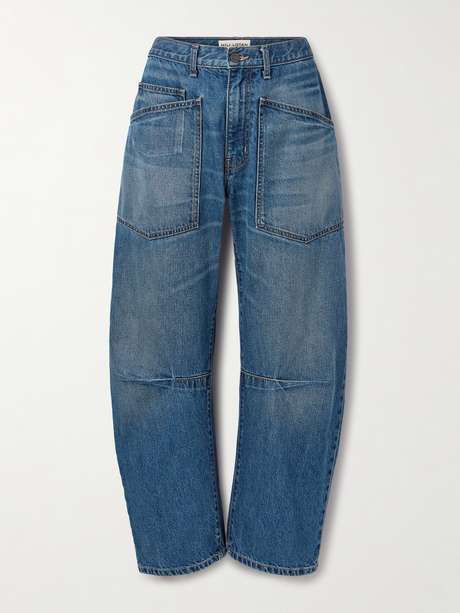Nili Lotan's 'Shon' pants are a utilitarian staple. Cut from light-blue denim, they have elongated cargo pockets and pleated knees that accentuate the curved, barrel-leg shape. Wear yours with a tucked-in tee or sweater.