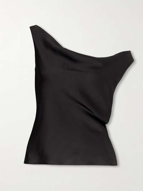 Norma Kamali's 'Maria' top is crafted from lustrous satin, draping into an elegant off-the-shoulder silhouette. Style it over a slip skirt with a pair of kitten heels.