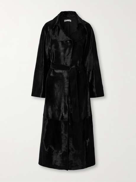 EXCLUSIVE AT NET-A-PORTER. Nour Hammour's 'Althea' coat is perfect for layering over dresses and tailoring for glamorous evenings out. Made from smooth and shiny cow hair, it has an enveloping shape with notched lapels and a self-tie belt to define your waist.