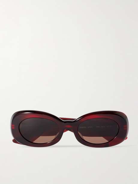 Oliver Peoples' collaboration with KHAITE is not to be missed. Handcrafted in Italy, these sunglasses are made from glossy acetate with prominent oval frames and chunky arms.