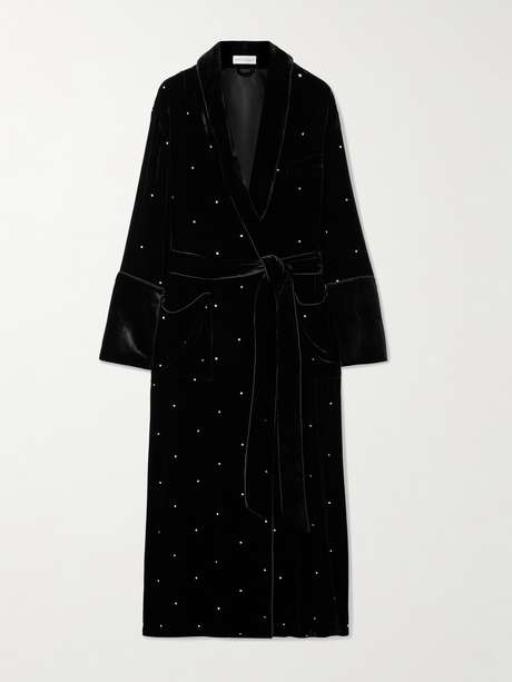 OLIVIA VON HALLE Capability crystal-embellished belted velvet robe